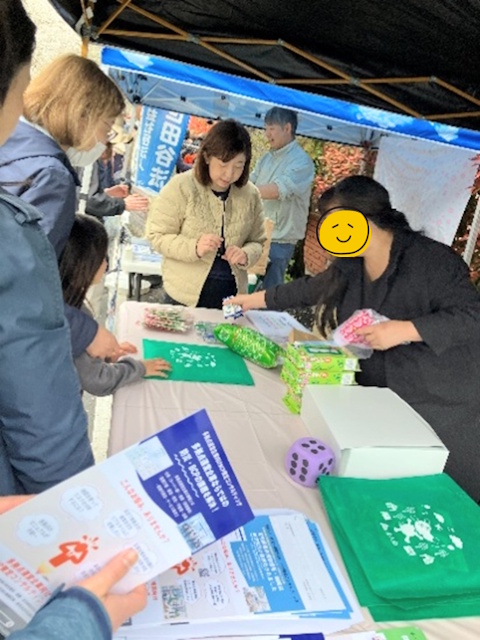 動くイータ君も登場し一緒の写真撮り、税金クイズや1億円のレプリカの札束を体感・重さ当てるクイズ、租税教育冊子の配布、スフィーダ世田谷FC観戦チケットもプレゼントしました。