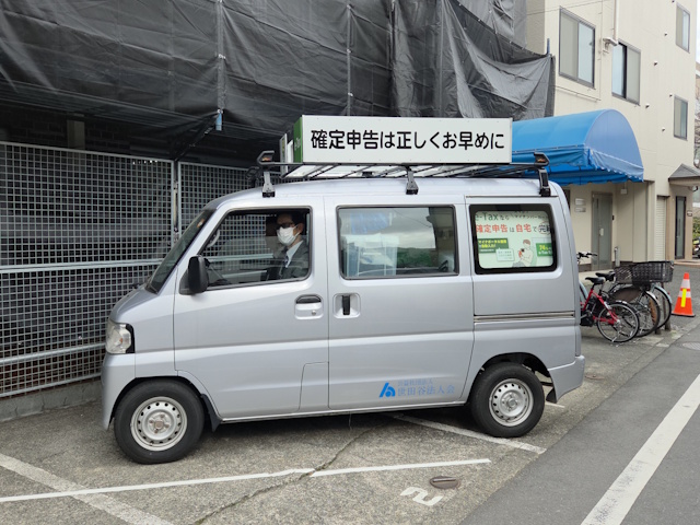 (公社)世田谷法人会(広報委員会・青年部会)では、税務行政への協力の一環として、世田谷税務協議会と連携し、(一社)世田谷青色申告会ご協力のもと、毎年2月〜3月の確定申告提出時期にかけて、スピーカーを取り付けた広報車で世田谷税務署管内の各所を巡回する街頭広報活動を行っています。