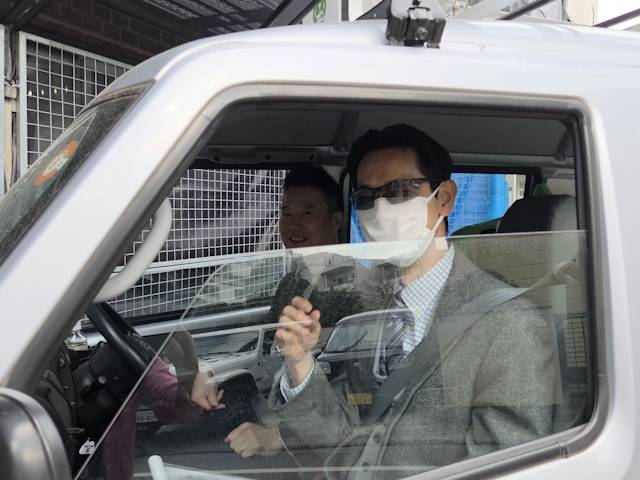 日出男 青色申告会会長を囲んでの出発式の模様です。 |